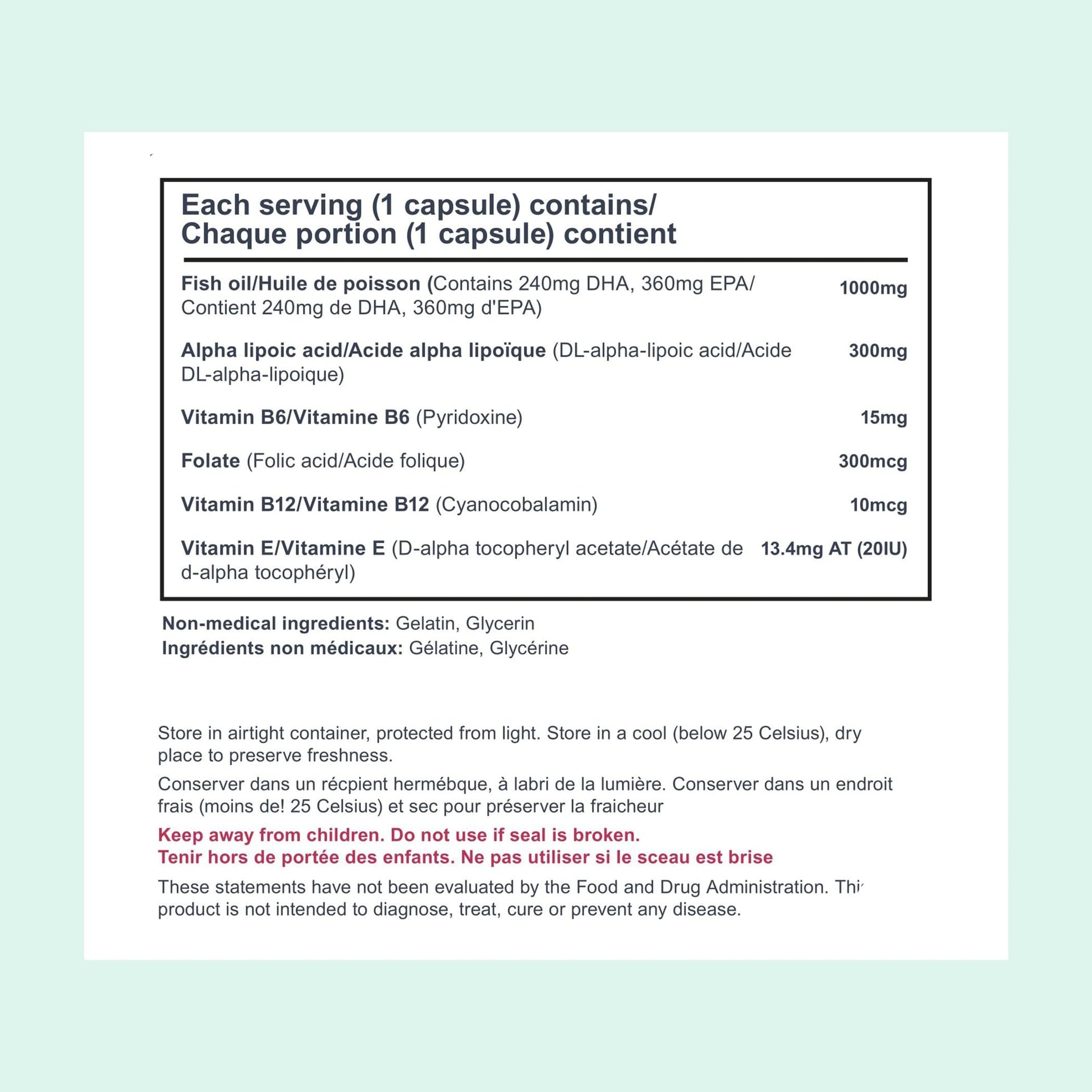 Omega-3 fatty acids promote the health and function of the heart by providing the necessary anti-oxidant support. Lipoic acid and vitamin B12 increase and regulates the heart rate and pumping.