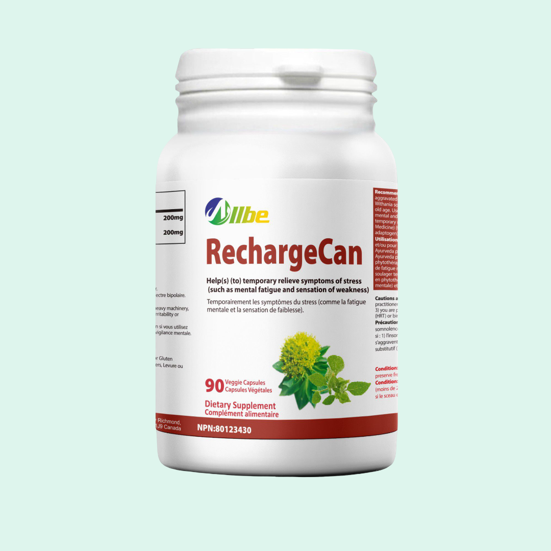 At its core RechargeCan supplement harnesses the ancient wisdom of Ashwagandha, renowned for its stress-relieving properties. Each capsule contains a potent 200g serving of this remarkable herb, effectively combating stress and anxiety, creating a sense of calm and well-being.