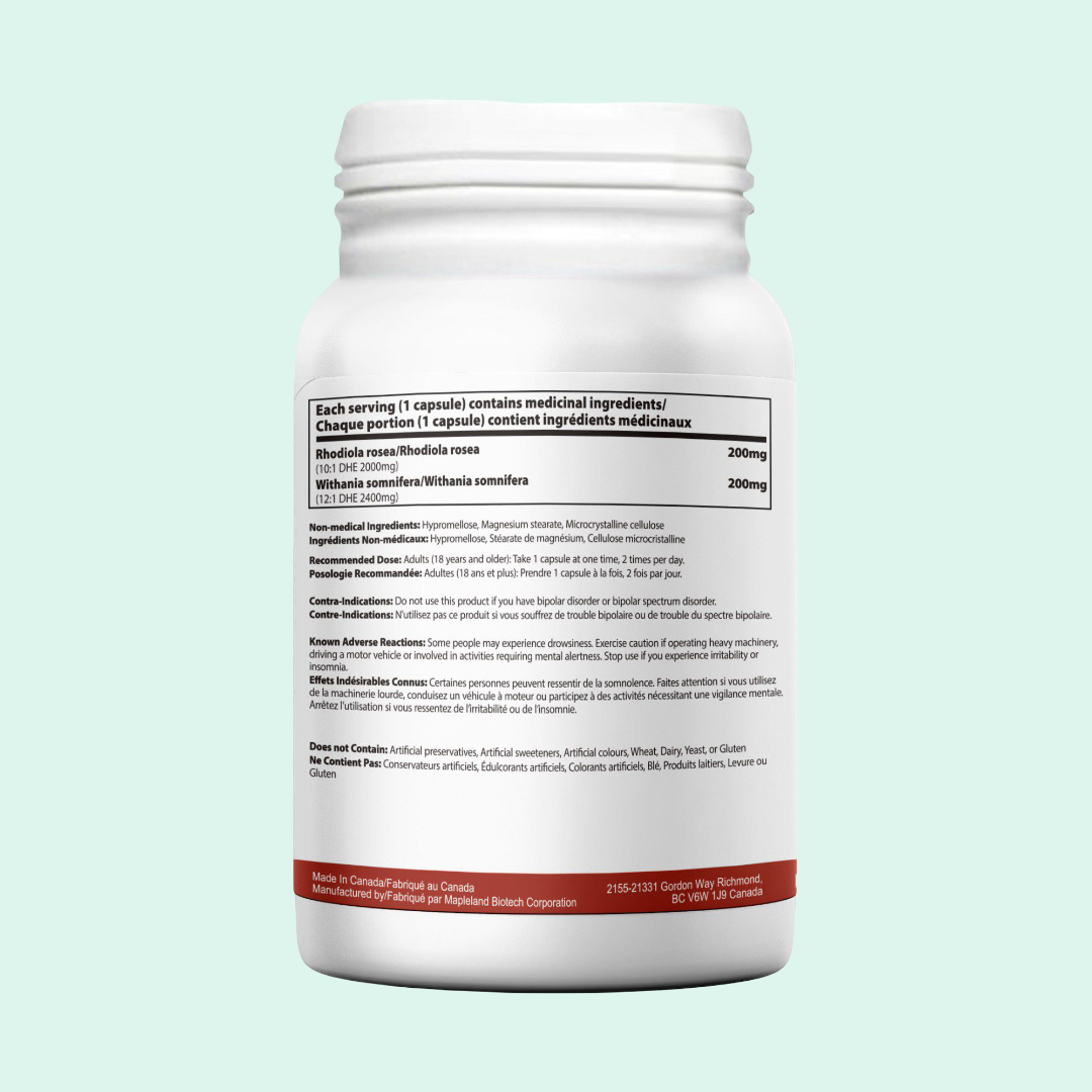 The supplement's adaptogenic properies of Ashwagandha and Rhodiola help strengthen the immune system, making it more resilient against common ilinesses and stress-related health issues.